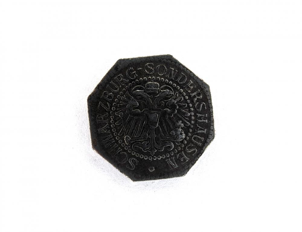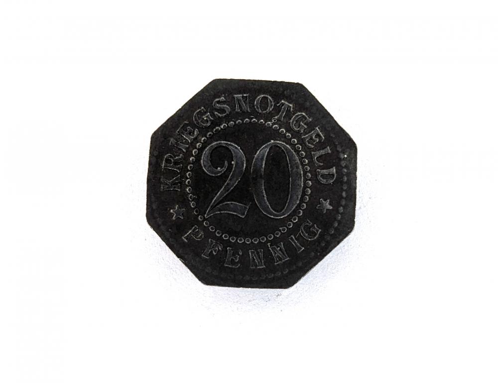 Tag: Schwarzburg-Sondershausen coin, 20 Pfennig Kriegsnotgeld, Two-headed eagle emblem, German emergency war money, 1918, Schwarzburg, Sondershausen, Principality coinage, Historical German numismatics, Crowned eagle coin.