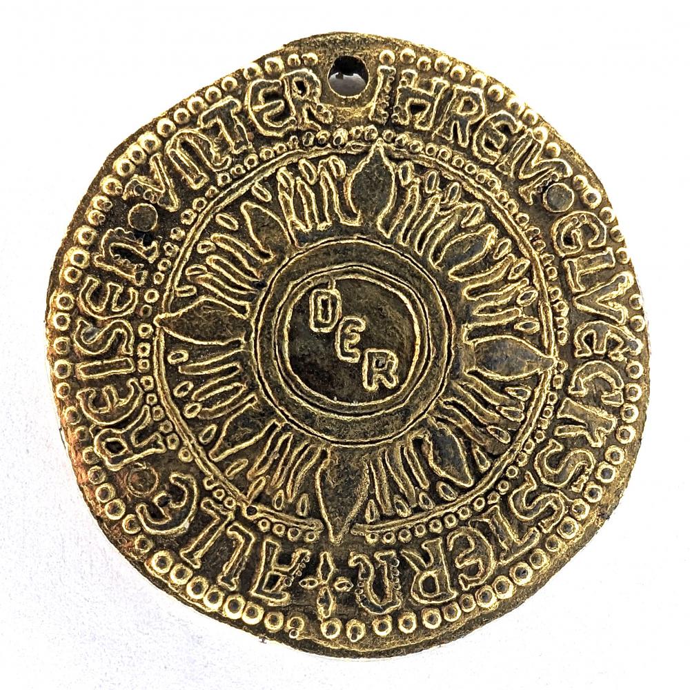 The reverse presents a stylized sunburst design, often linked to fortune and celestial guidance. The accompanying German inscription reads: