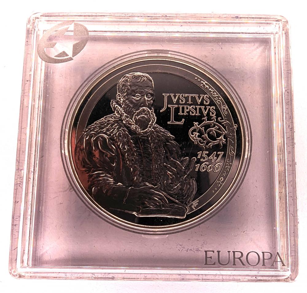 The reverse features a detailed portrait of Justus Lipsius, modelled after an original engraving by Van Dijk. The reverse lettering is clearly inscribed as: “JUSTUS LIPSIUS 1547 1606”. This modern numismatic issue reflects Belgium’s intellectual heritage and its recognition of Renaissance scholarship. The coin was minted in a limited quantity of 50,000 pieces, under the reign of King Albert II. A desirable addition to collections focused on humanist figures, European Union coinage, or Belgian commemoratives.