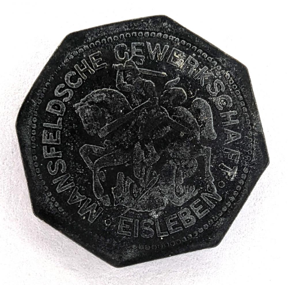 Tag: 50 Pfennigs Eisleben, Mansfeldsche Gewerkschaft coin, MANSFELDSCHE GEWERKSCHAFT EISLEBEN, KLEINGELDERSATZ 1917, Eisleben notgeld, Mansfeld token, WWI emergency coin, German 1917 notgeld, knight slaying dragon coin, Coinantiquariat